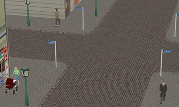 | Kopfsteinpflaster StadtDieses Set beinhaltet Spines und Gleisobekte zum Aufbau von Kopfsteinpflaster-Strassenzügen.